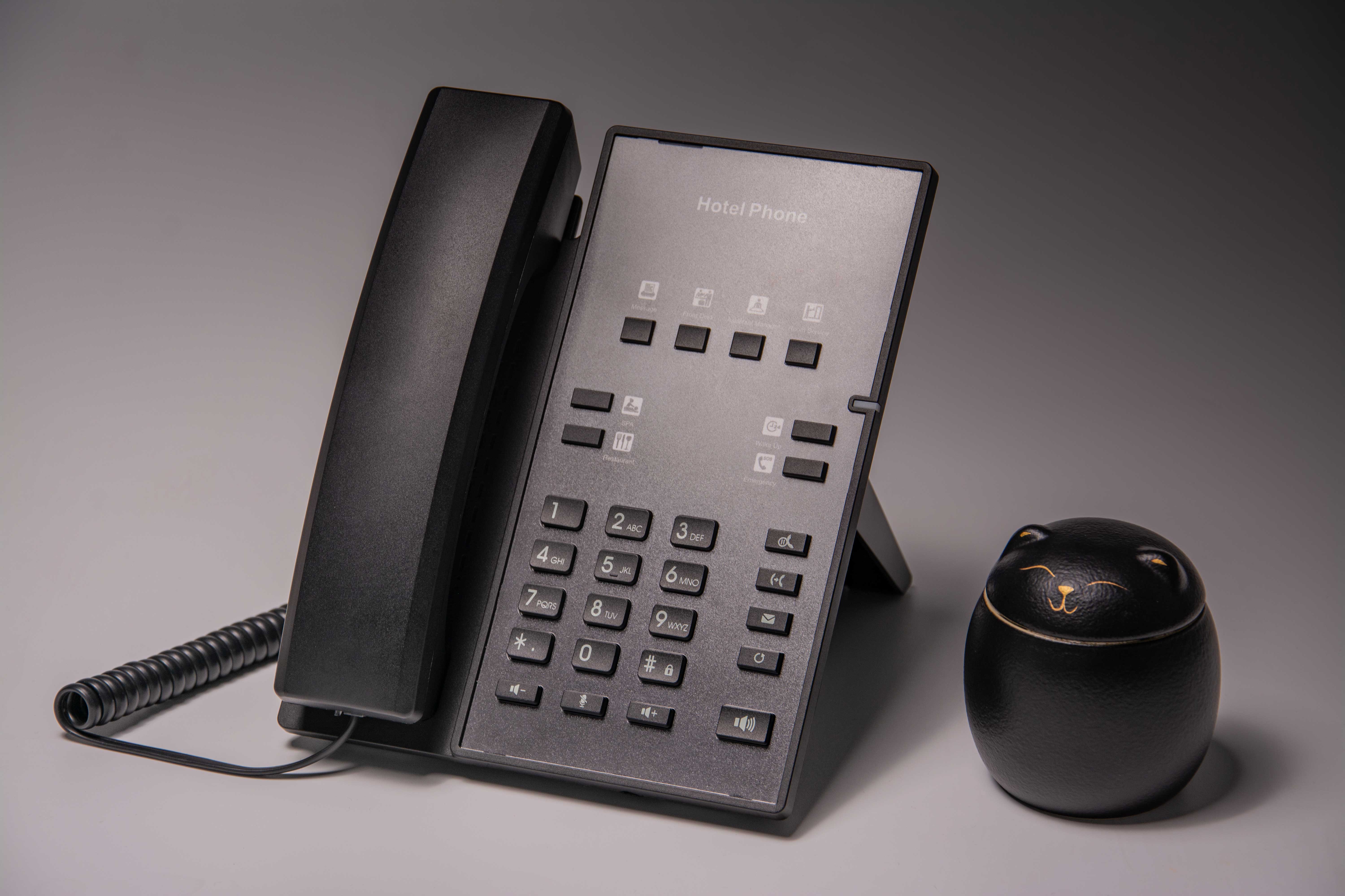 Аппарат оснащен 8 программируемыми программными клавишами, отвечающими прикладным требованиям различных гостиничных сценариев. H1 поддерживает HD-аудио, сетевой порт 10/100 Мбит/с и PoE, снижая стоимость развертывания телефонной сети в отеле.